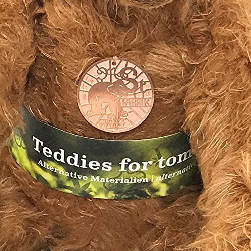 A sustainable classic: stuffed with wood shavings, Linus Teddy bear looks at the world through gleaming wooden eyes, his copper chest tag with the original Company logo of 1897. As one of the “Teddies for tomorrow”, he sports an outfit made entirely of plant-based material. His russet coat of soft linen plush goes beautifully with its paws and soles, which are made from a high-grade vegan felt called Violan. A love that will be sustained forever!